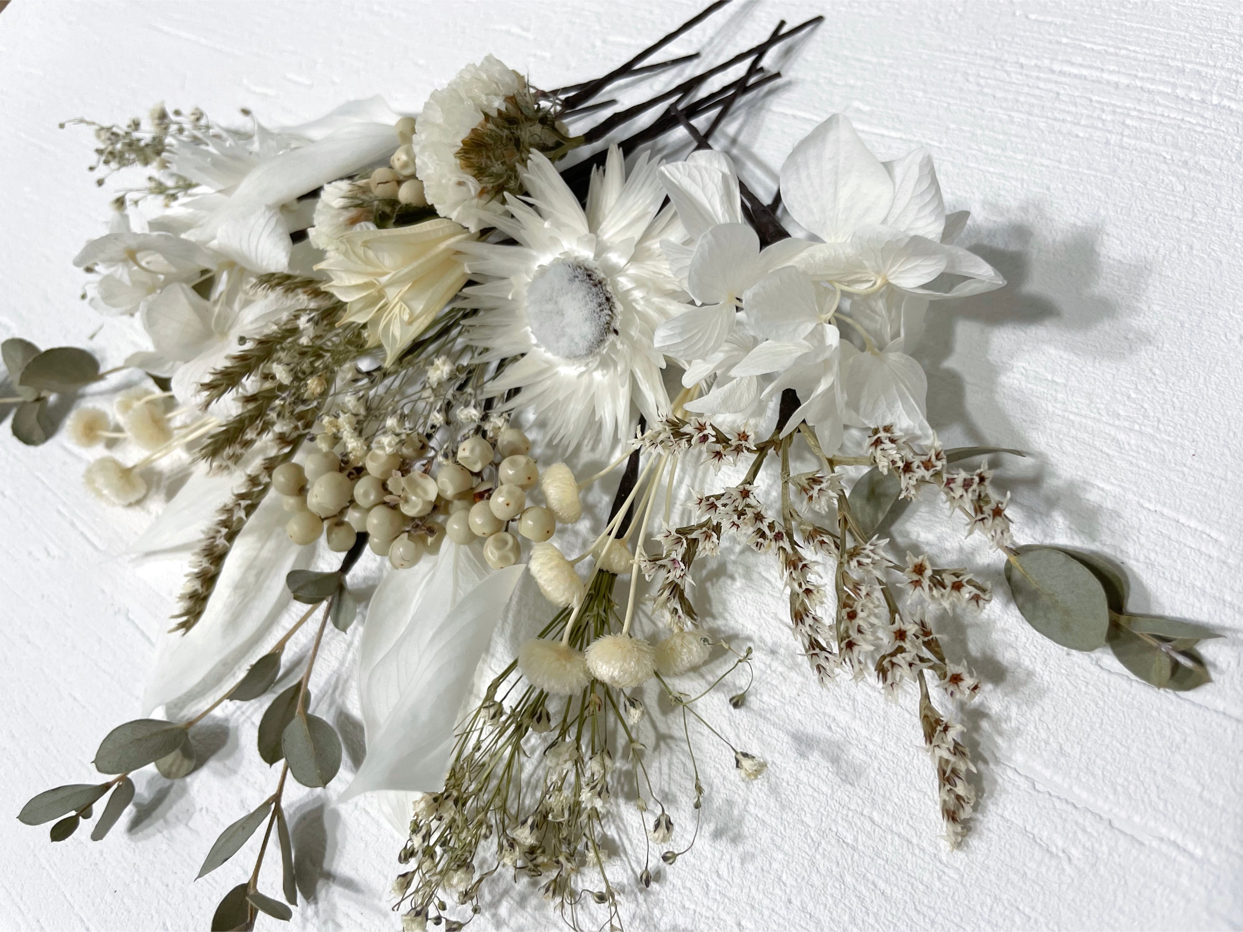 アジサイ以外は全てこだわりのドライフラワーを使用して仕上げました^^